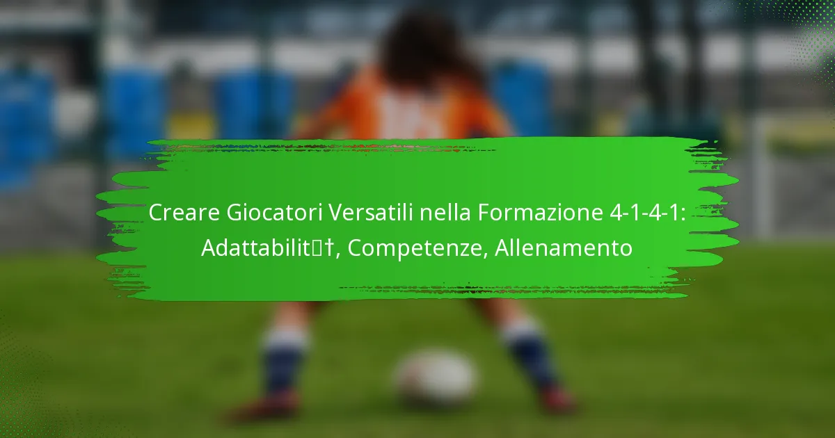 La formazione 4-1-4-1 è un assetto tattico nel calcio che bilancia la stabilità difensiva con opzioni offensive. Per prosperare in questa formazione, i giocatori devono sviluppare un set di abilità versatile che comprenda forti capacità difensive, gioco di centrocampo e abilità offensive. Un allenamento focalizzato sull’adattabilità e sulla consapevolezza situazionale è essenziale, consentendo ai giocatori di eccellere in vari ruoli e rispondere efficacemente alla natura dinamica delle partite.